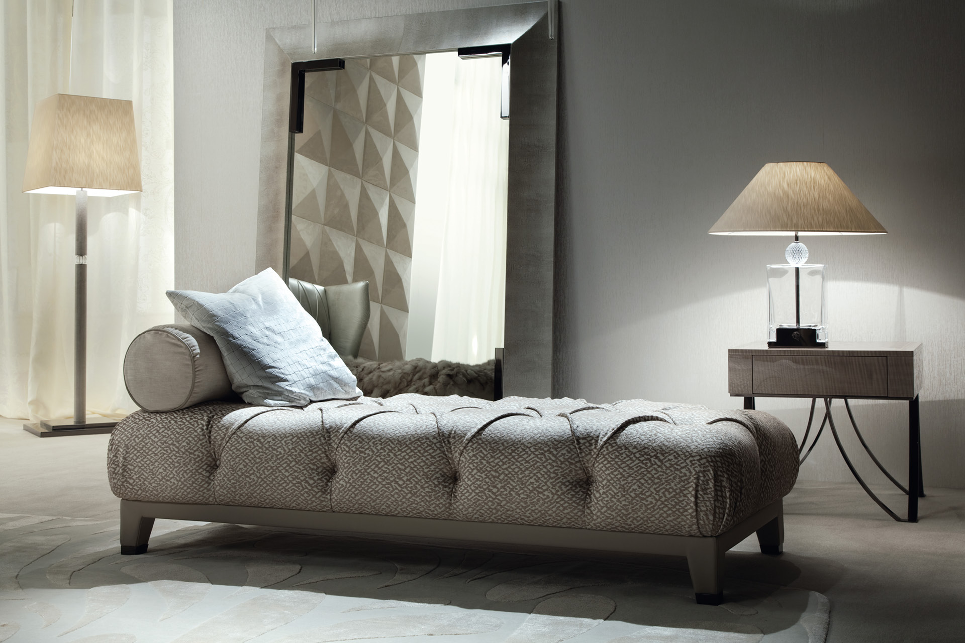 الشيزلونج ماسامي يتميز بمقعد مصنوع من رغوة البولي يوريثان الملفوفة بريش الوز، مما يضمن الراحة الإضافية. يتميز المقعد بأزرار لإضفاء مظهر أنيق. قاعدة الشيزلونج مصنوعة من توليفة من الجلد والفولاذ المقاوم للصدأ، وتأتي بلون رمادي داكن.