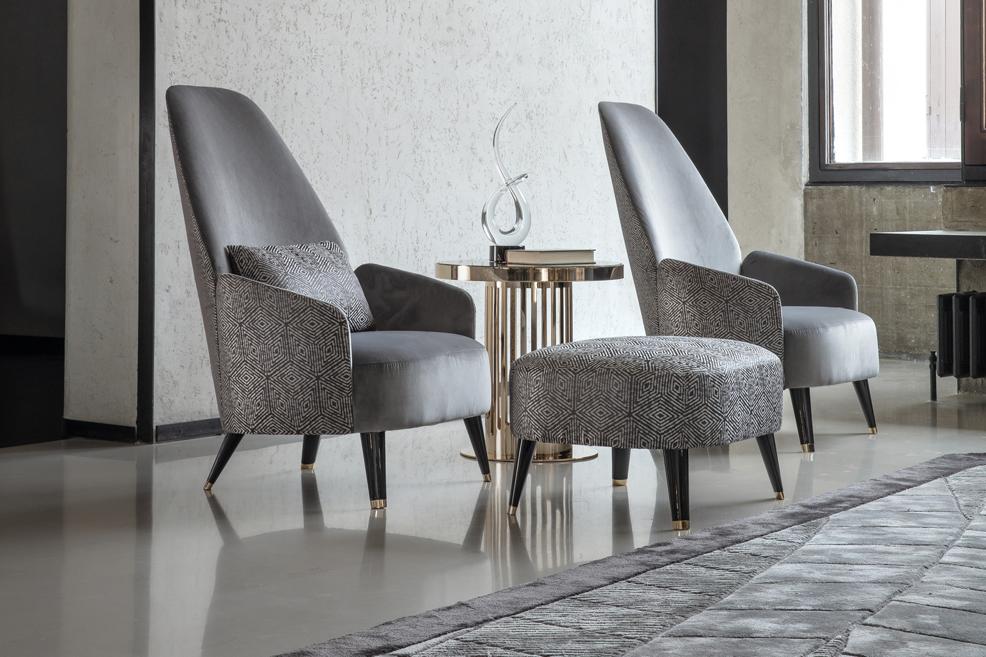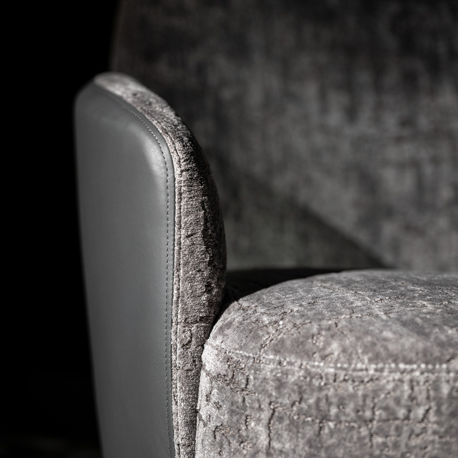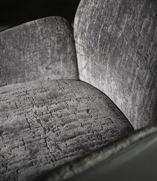 كرسي مناسب. ظهره مزين بشعار Giorgio Collection. تفاصيل القاعدة مصنوعة من الفولاذ المقاوم للصدأ بطبقة كروم ذهبي فاتح.