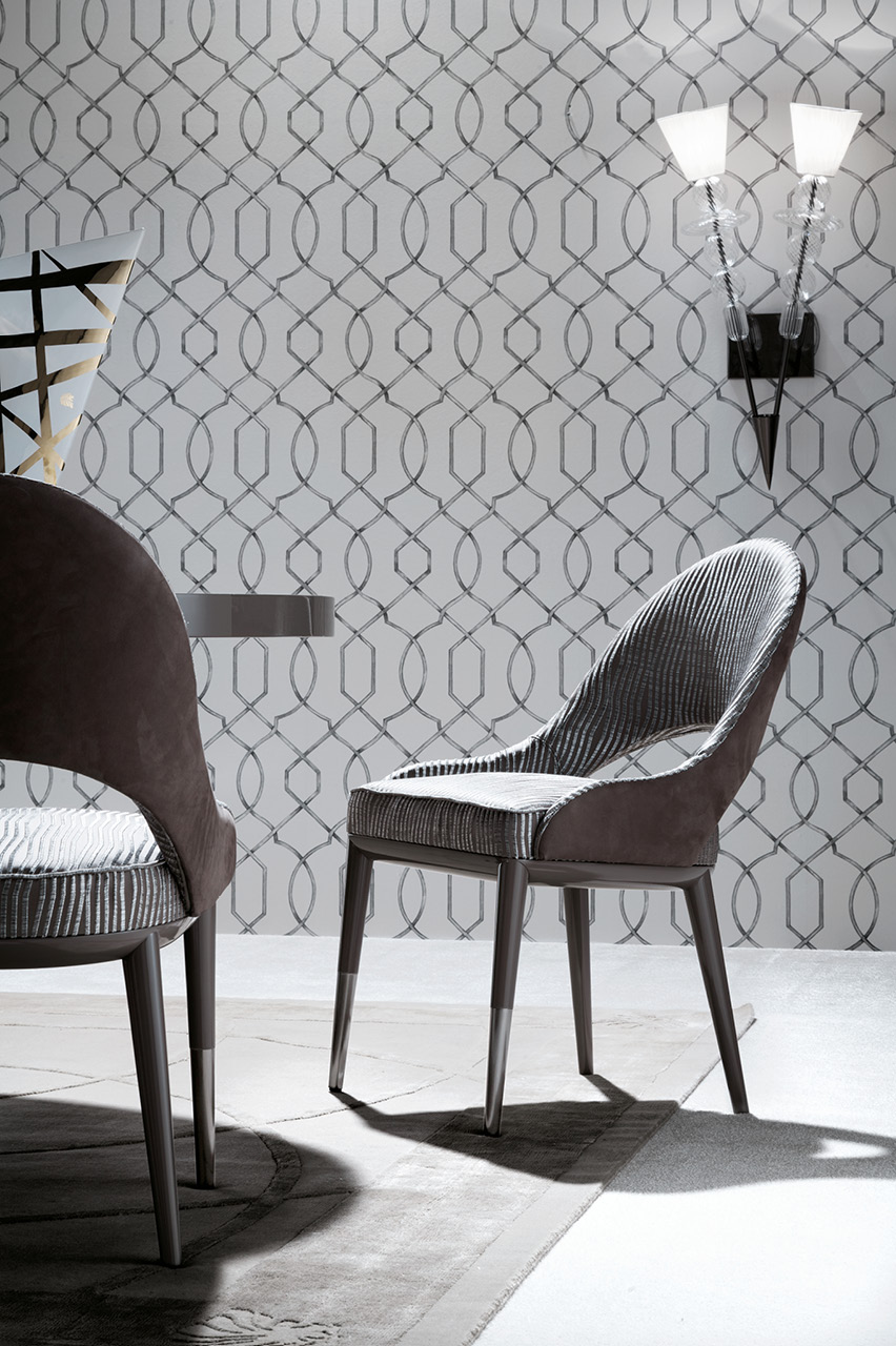 كرسي جانبي بقاعدة من اللاك اللامع بلون رمادي.