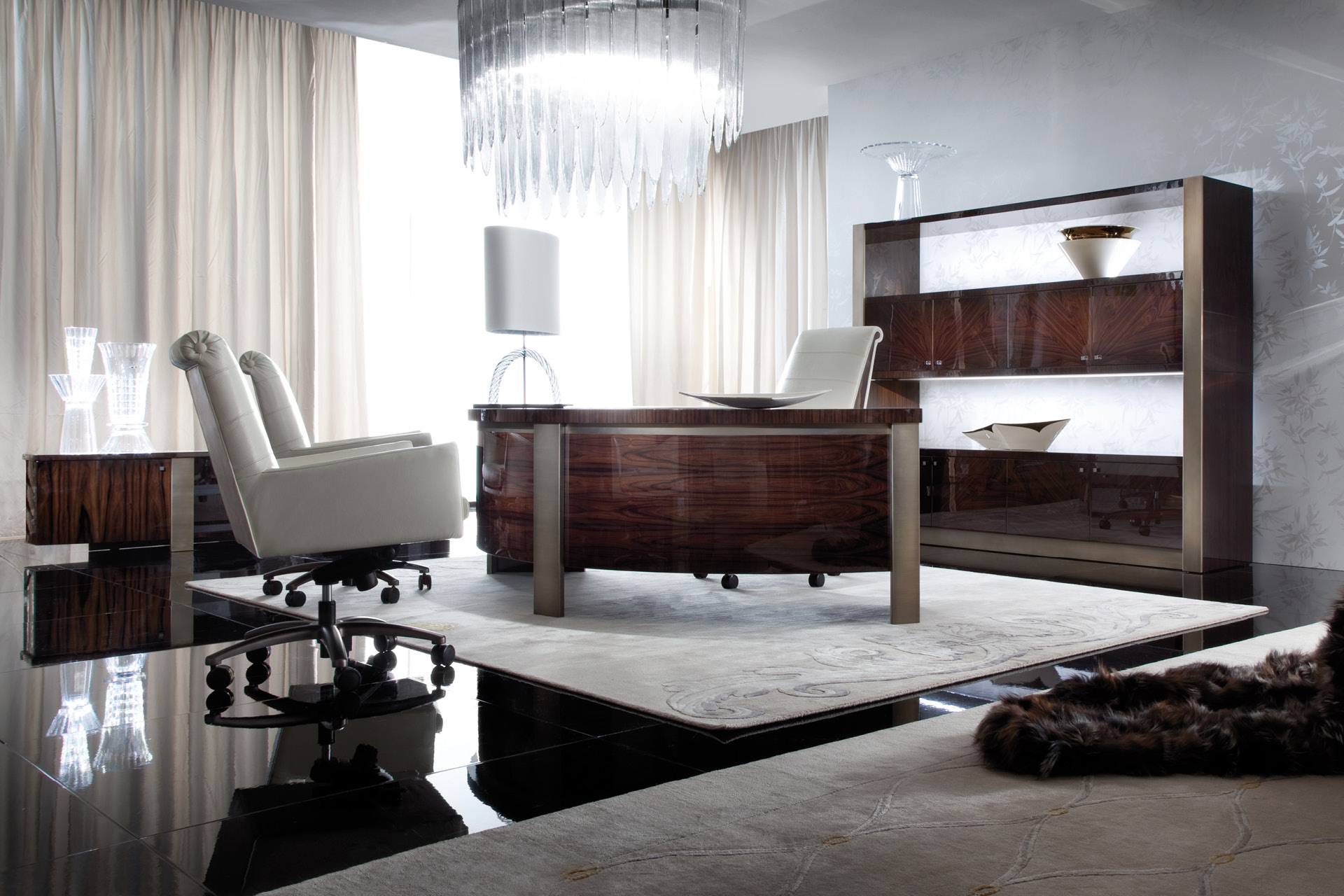 المكتبة مصنوعة من قشرة خشب الورد البرازيلي بطبقة لامعة عالية الجودة من البوليستر. تحتوي على 8 أبواب خشبية ونظام إضاءة LED خاص يتضمن مفتاح تعمل باللمس. تفاصيل من الفولاذ المقاوم للصدأ المذهب.