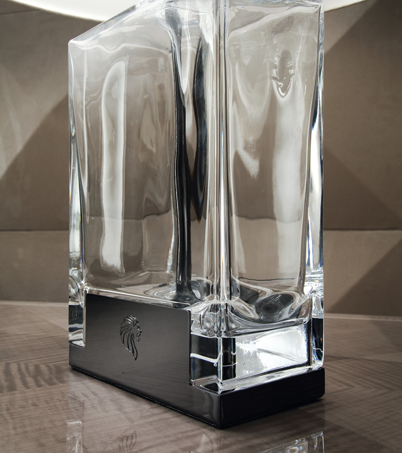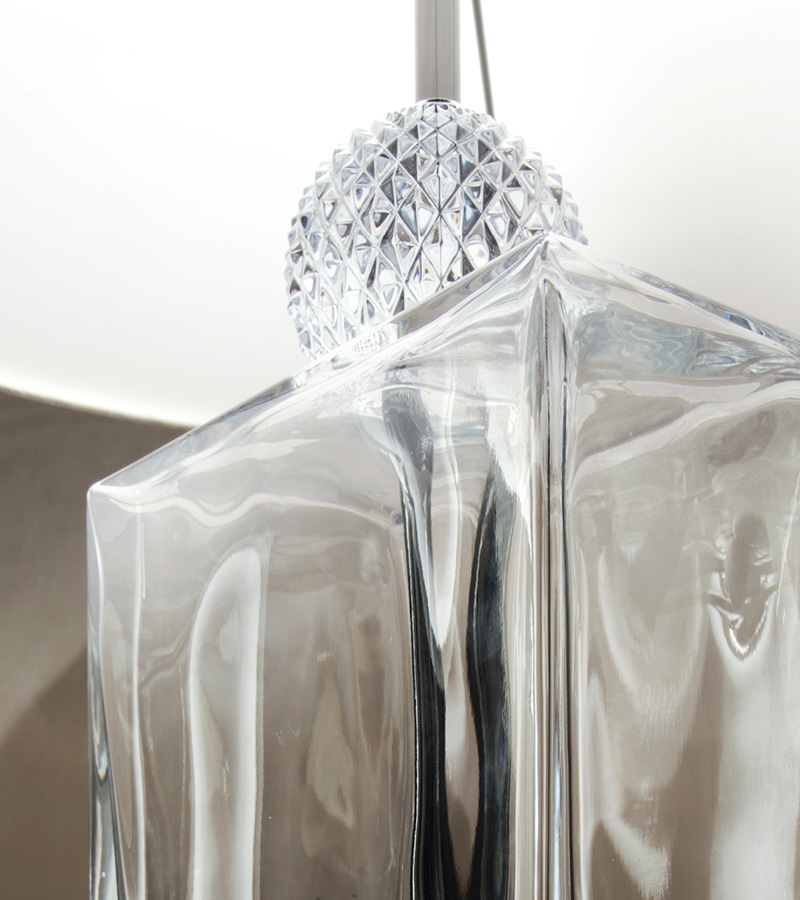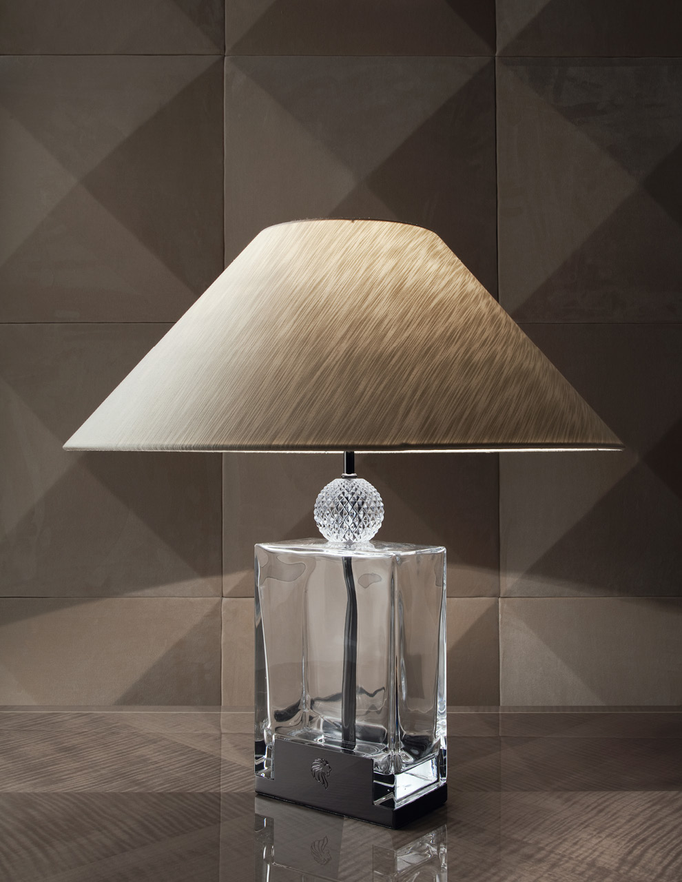 Lampe de taille moyenne avec combinaison de cristal florentin et base en acier inoxydable et finition gris foncé tempête. Logo Giorgio Collection et abat-jour en soie beige.