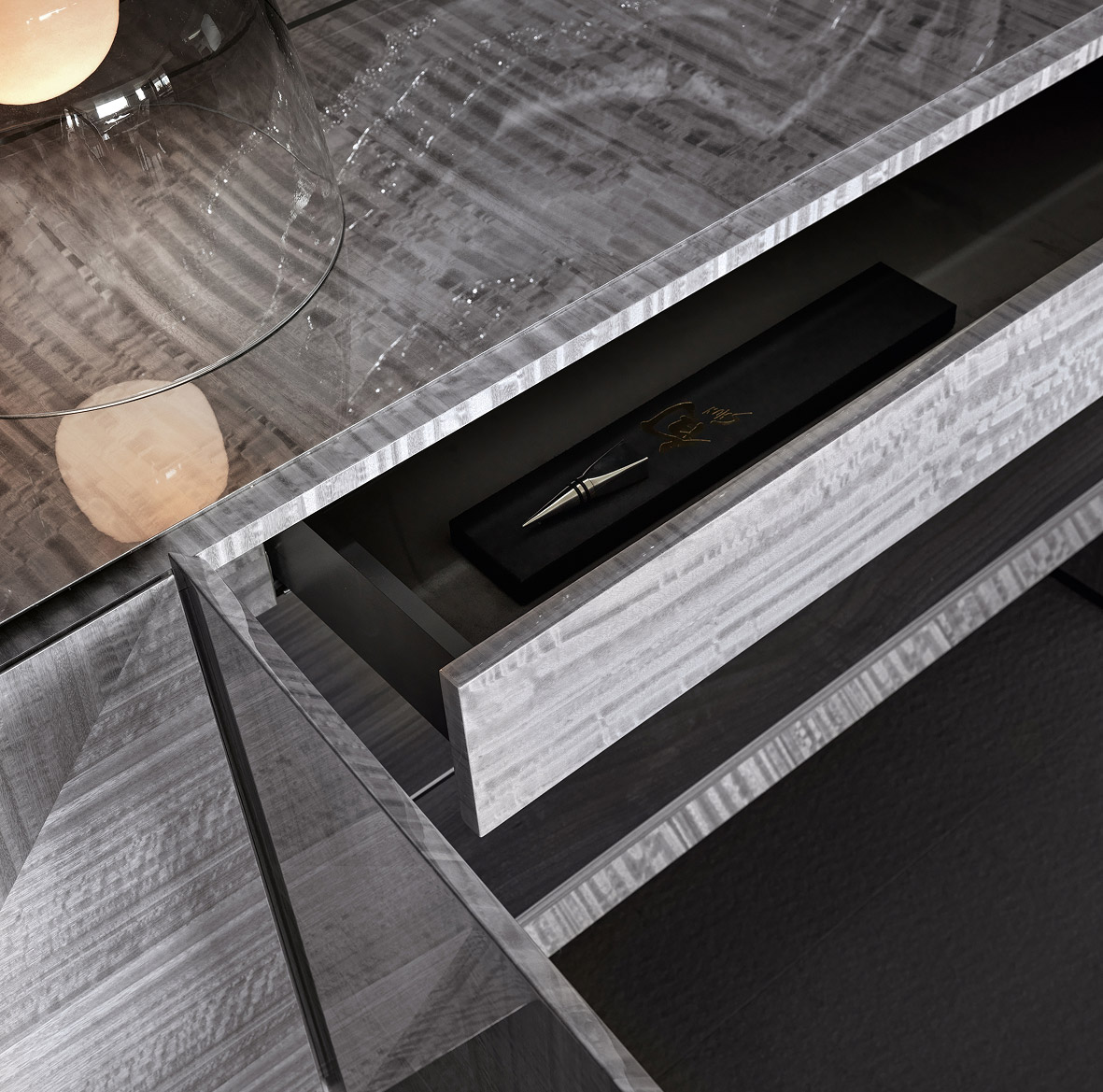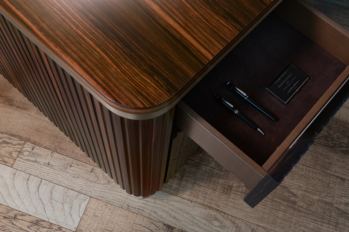 Dans le mobilier haut de gamme, la valeur du bois ressort avant tout dans les détails. Des épaisseurs importantes, des bordures impeccables, des angles parfaitement finis et des surfaces lisses comme de la soie sont le résultat d’un travail artisanal minutieux. Le bois devient ainsi une véritable signature stylistique, capable d’interagir avec d’autres matériaux précieux tels que le marbre, le cuir et le métal, créant ainsi des meubles équilibrés à fort impact esthétique.