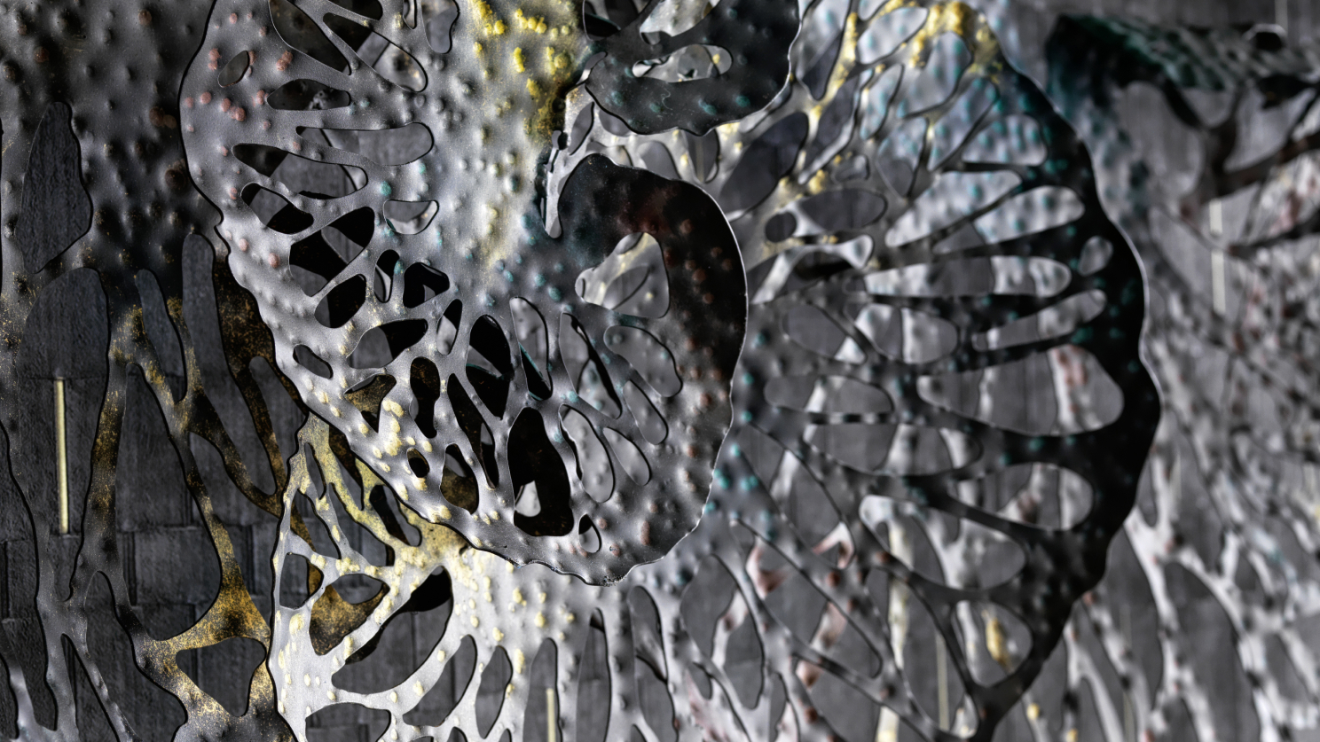 Nous présentons une sculpture faite et peinte à la main par la célèbre artiste Lara Masolo, en métal satiné. Cette sculpture, créée spécifiquement pour la collection, s’inspire de la structure complexe des feuilles de corail et les transforme en un objet de luxe.