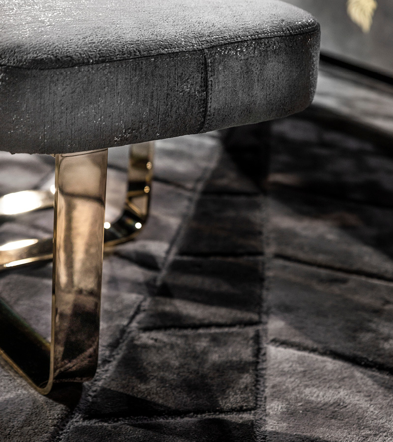 Banquette avec pieds en acier inoxydable chromé or clair avec logo Giorgio Collection.