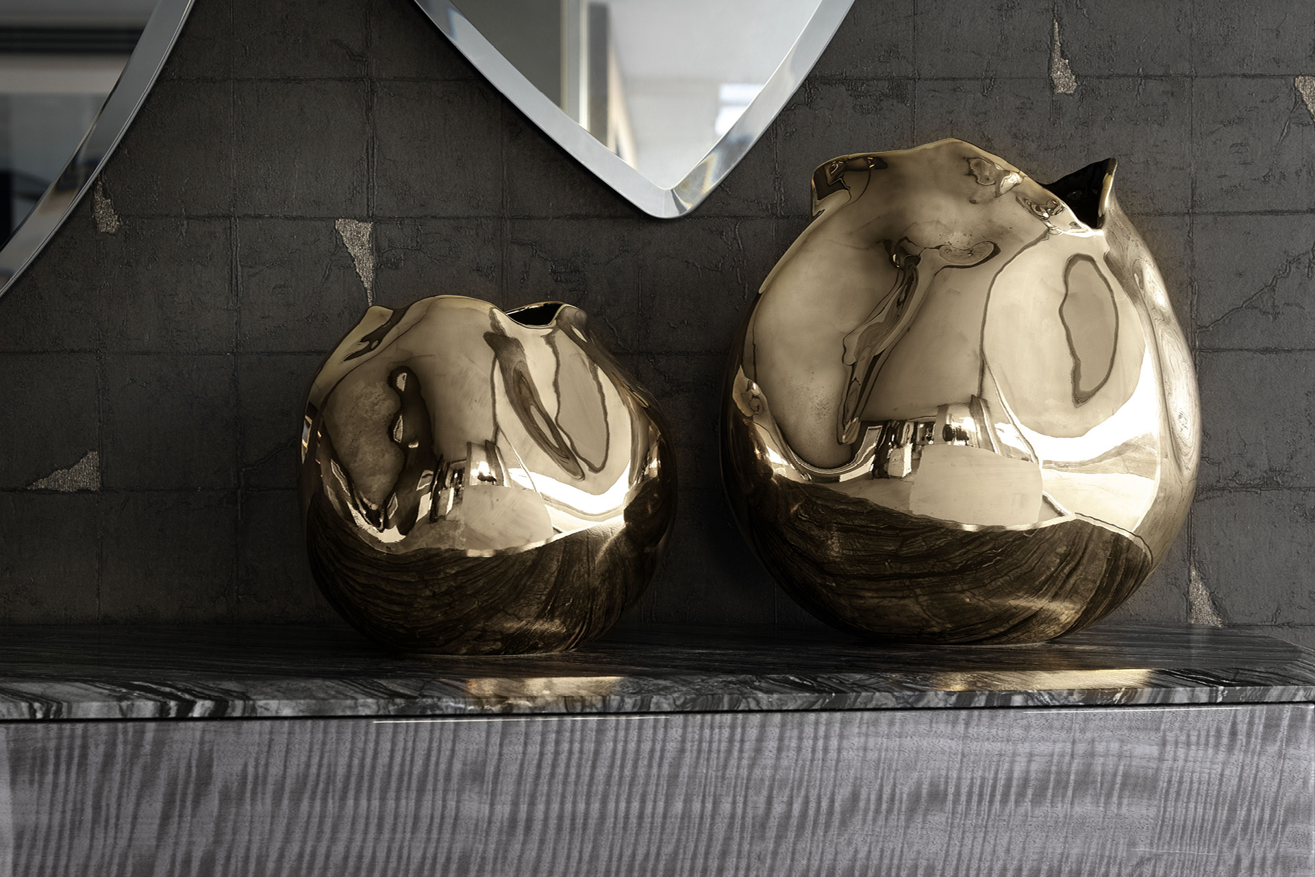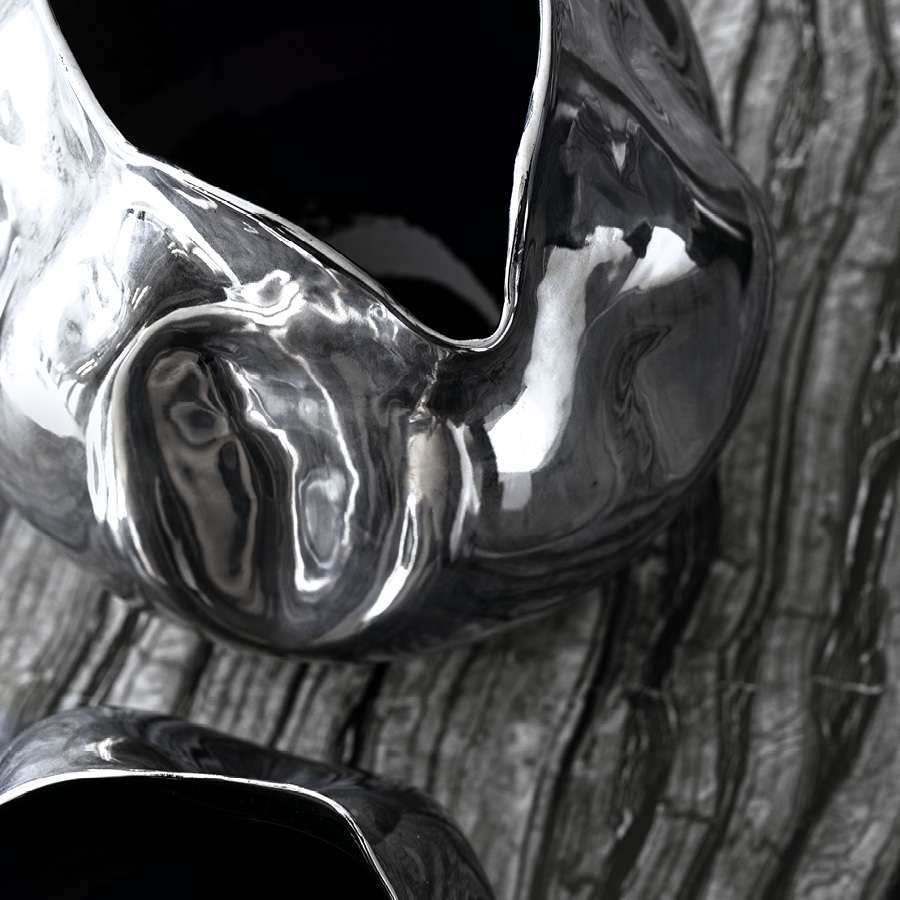 Grand vase en céramique plaqué platine ou or 24 carats.