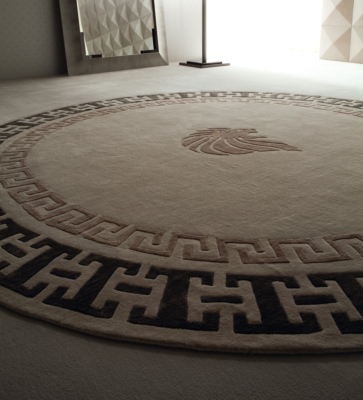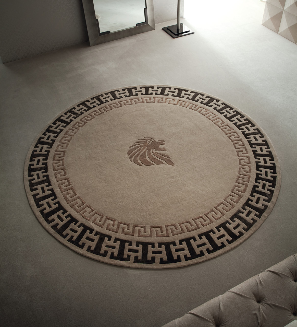 Tappeto rotondo annodato a mano con combinazione di lana e 100% seta. Fatto su misura.