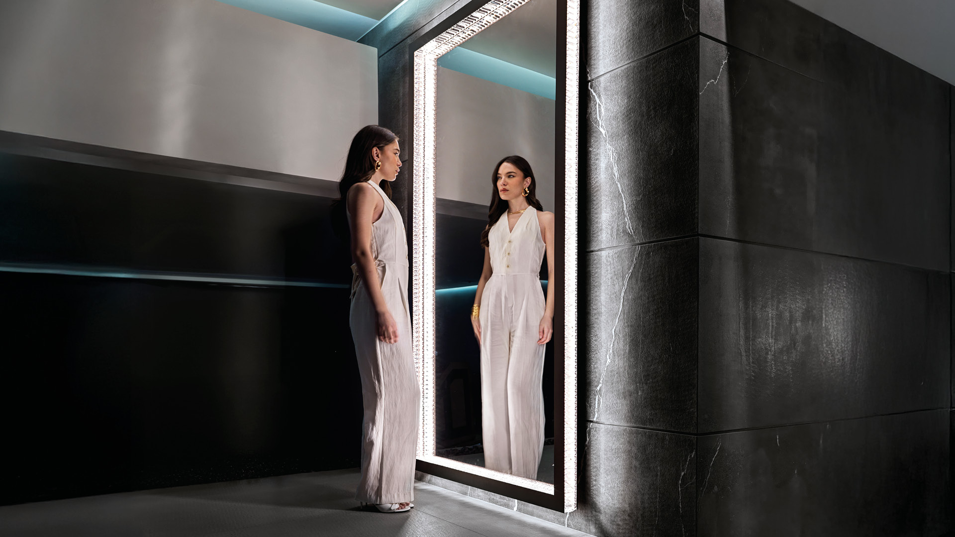 Al centro della collezione c’è un profondo impegno per la qualitĂ e l’innovazione, caratterizzato da un uso raffinato dei materiali che creano un’atmosfera davvero esclusiva. L’acciaio inossidabile con finitura in titanio zincato satinato trova la sua controparte perfetta nel marmo Oyster della Namibia lucido e nel legno di ebano di Makassar, fondendo pietra naturale e legno esotico in un’esibizione di lusso senza tempo.