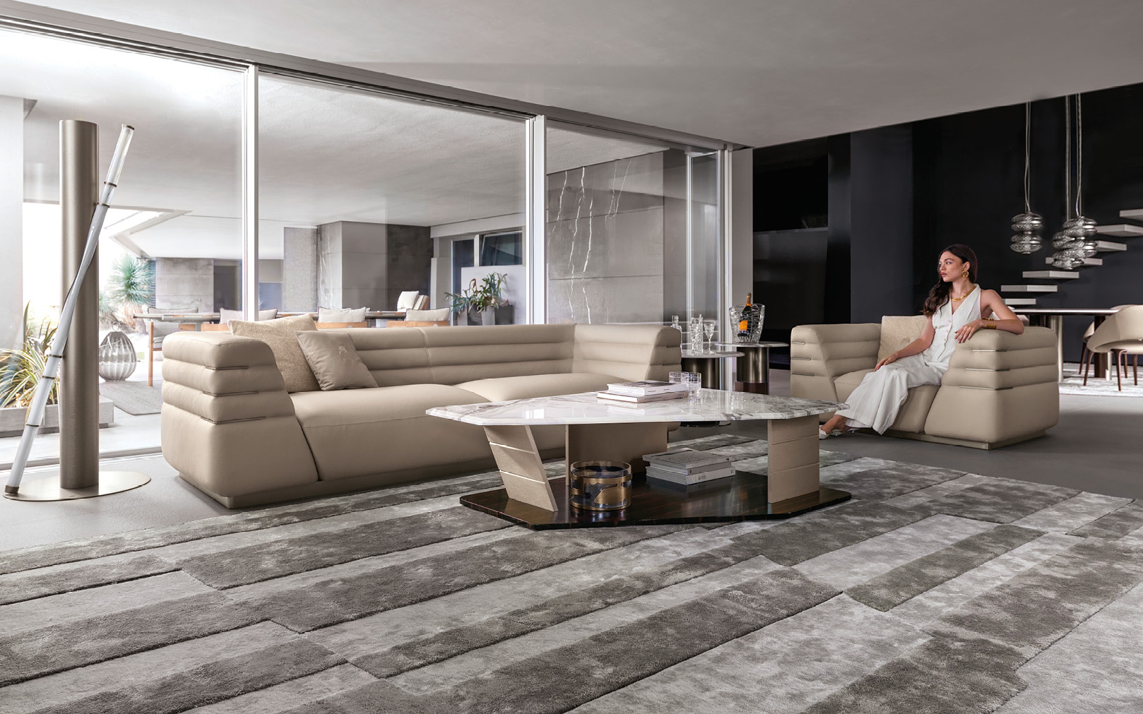 Incarnando l’estetica distintiva di Giorgio Collection, OPUS ridefinisce il panorama del lusso Made in Italy, dove artigianato e design convergono in un dialogo armonioso all’insegna dell’eleganza. La precisione architettonica incontra l’espressione artistica, in un equilibrio ritmico tra strutture geometriche audaci e una sensazione tattile invitante, ispirata alla haute couture.