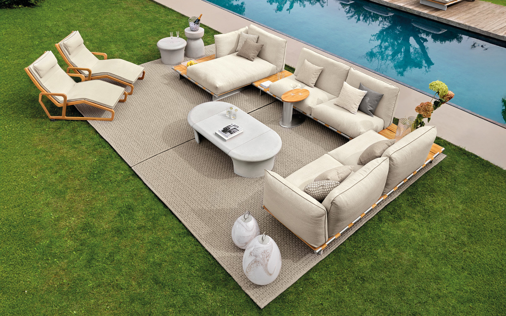 La collezione è concepita come un sistema completo per esterni, espresso attraverso una raffinata selezione di divani modulari, sedie, tavoli, lettini, chaise longue, tappeti e illuminazione. Il rivestimento selezionato per SAHARA è stato sviluppato per resistere all’aria aperta, all’acqua, al cloro, al sale, alla luce del sole e al tempo, conservando la sua morbidezza, il suo colore e la sua sensazione di lusso stagione dopo stagione. Ogni dettaglio è stato curato con meticolosa attenzione, garantendo che la collezione rimanga bella e funzionale come il giorno in cui è stata creata. SAHARA non è semplicemente una collezione per esterni, è una nuova filosofia di vita a contatto con la natura.