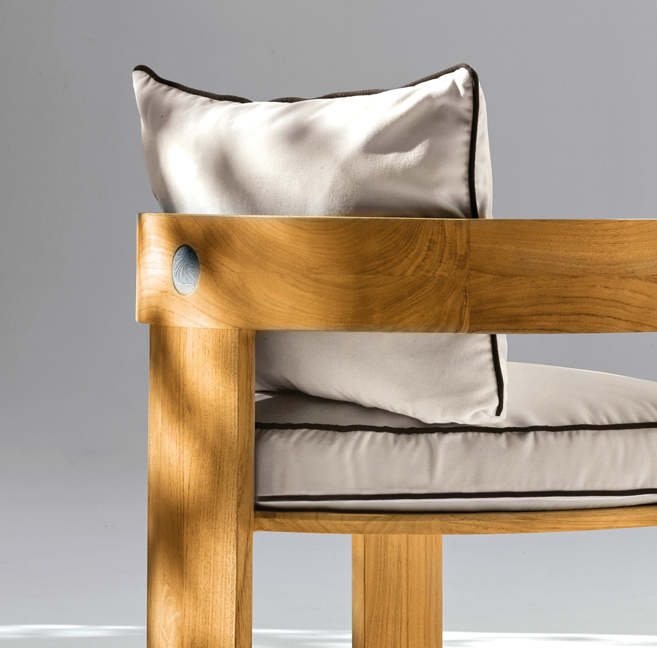 SAHARA è il nuovo universo outdoor dove l’artigianato italiano incontra la poesia degli elementi naturali, interamente MADE IN ITALY, la collezione traduce lo spirito del lusso moderno in un’esperienza all’aria aperta. Ispirata ai paesaggi sahariani e al calore senza tempo dei materiali naturali, questa collezione fonde legno naturale di teak birmano, acciaio inossidabile satinato e cemento lavorato a mano per creare un’atmosfera di lusso, raffinatezza e bellezza senza tempo. Il cuore della collezione SAHARA è il legno di teak birmano, scelto per la sua rara qualità e le sue calde venature, lavorato in doghe continue, sagomate con precisione lungo i bordi per esaltare le venature naturali del legno, sottolineandone la profondità di colore. Il legno naturale è perfettamente integrato in una struttura tubolare in acciaio inossidabile satinato, che crea un elegante contrasto visivo tra i due materiali, raggiungendo un perfetto equilibrio tra artigianato e ingegneria. Infine, il cemento lavorato a mano viene modellato in tavoli monolitici, grezzi ma eleganti, che creano forme scultoree che si fondono con l’ambiente esterno.