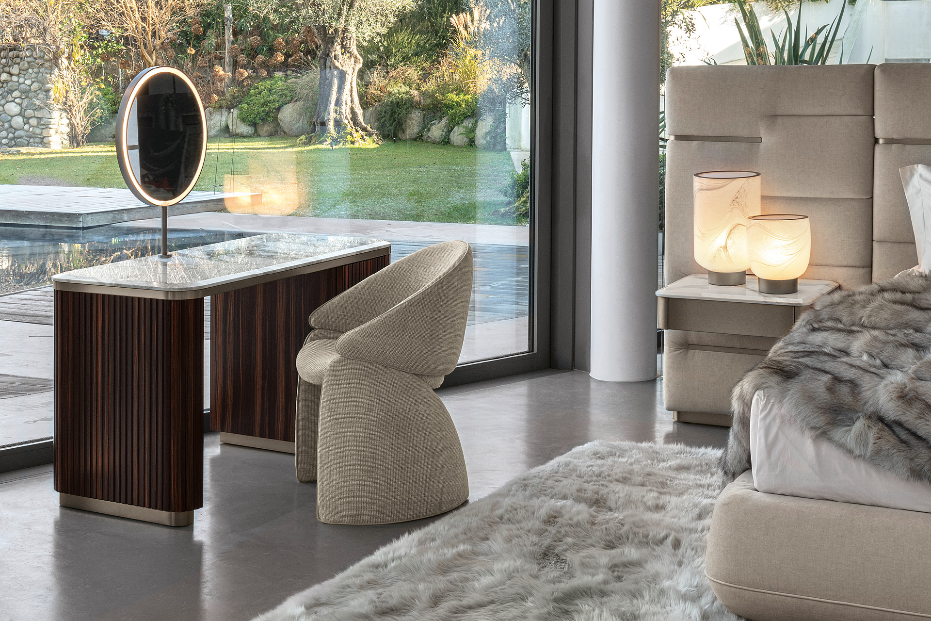 Sedia pozzetto completamente rivestita con struttura in alluminio disponibile in pelle di prima scelta, pelle nabuk, pelle o tessuto. Schienale con logo Giorgio Collection ricamato. Altezza seduta cm.47.
