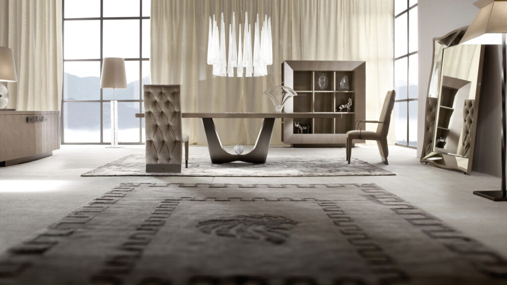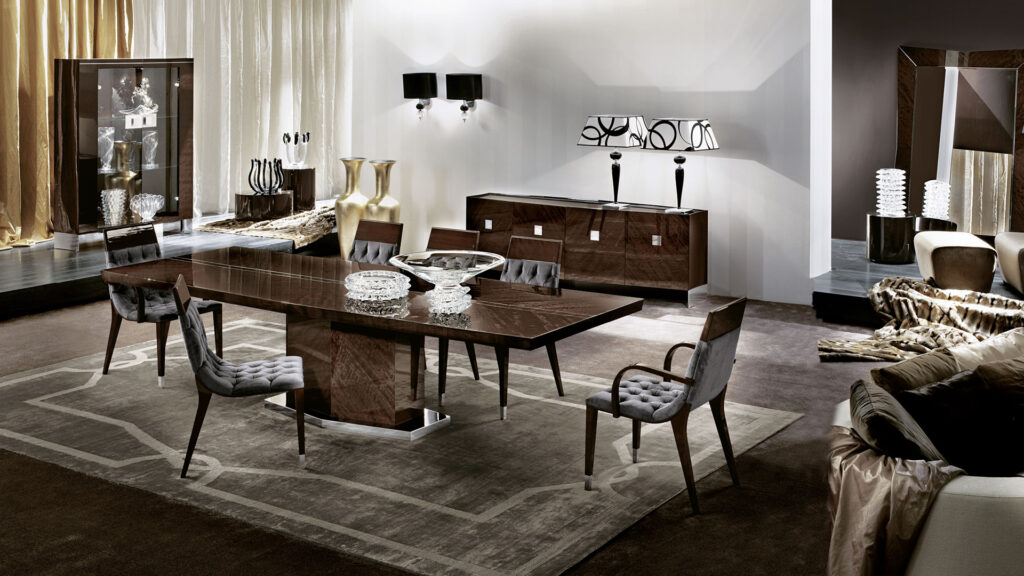 Chest with combination of brazilian rosewood veneer with high gloss polyester finish and bronzed stainless steel details. 5 full extension double drawers with bottom in velvet fabric. Bronzed stainless steel base.