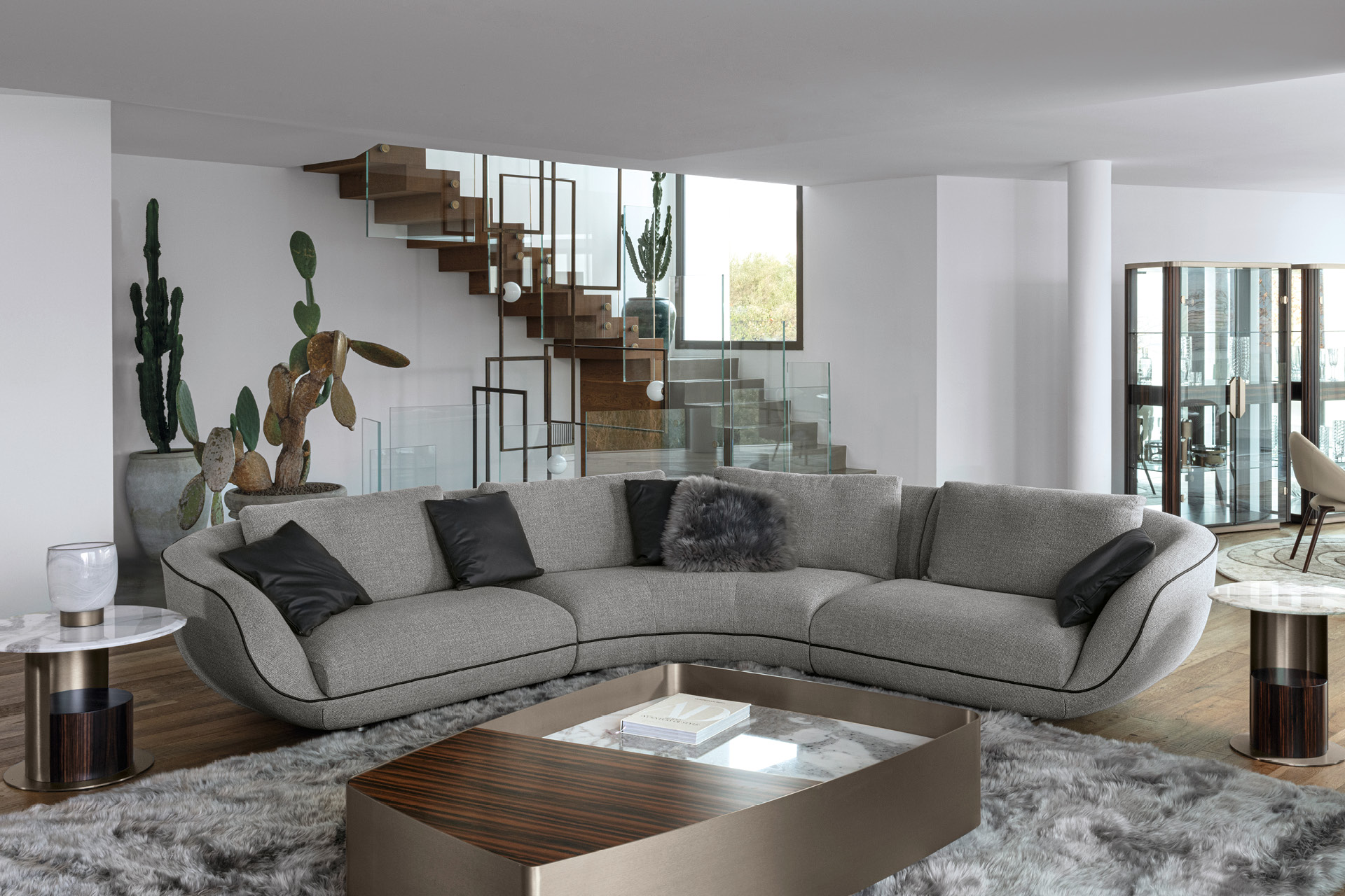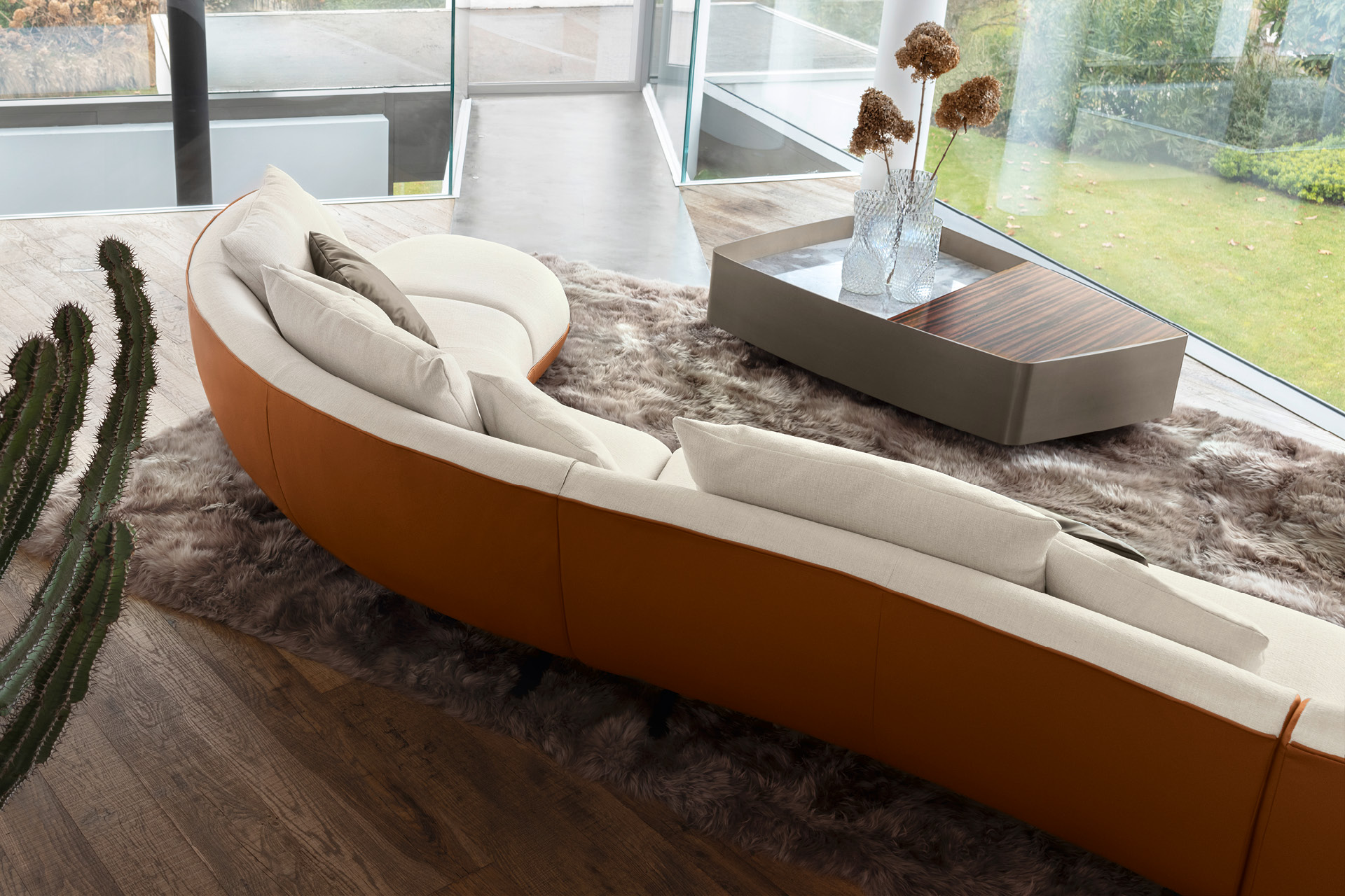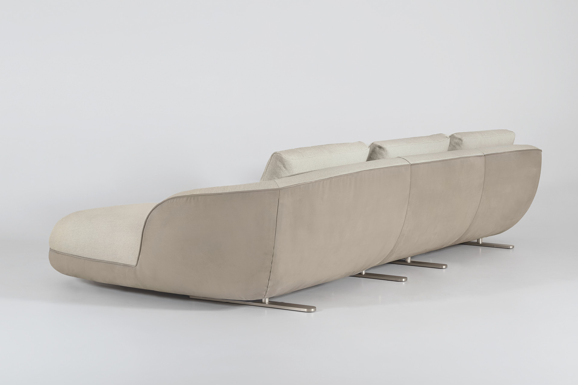 Chantal modular sofa available in first grade leather, nubuk leather, lizard printed leather or fabric. Sofa seats and sides with special stitching in polyurethane foam wrapped in down feather. Seat height cm. 43