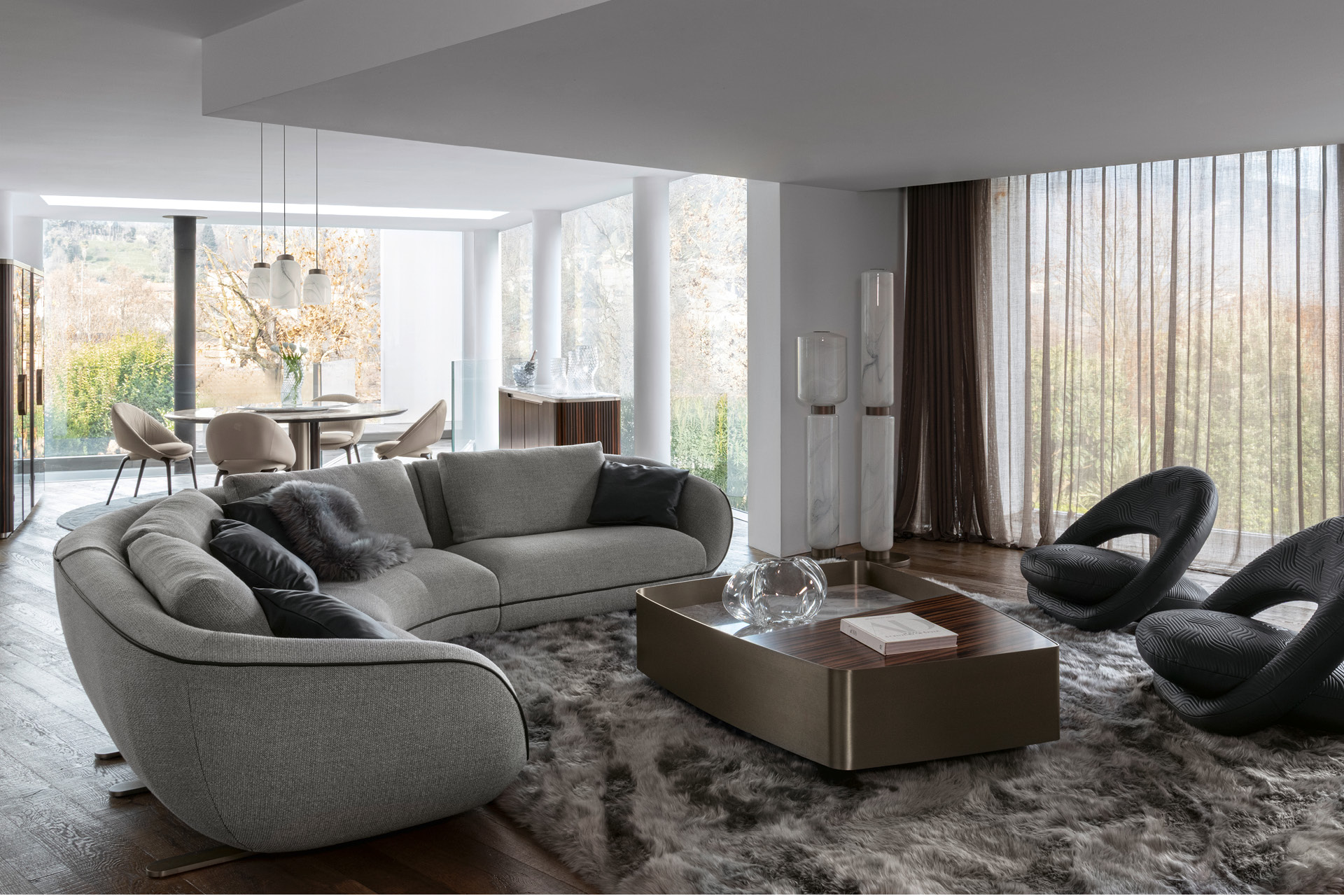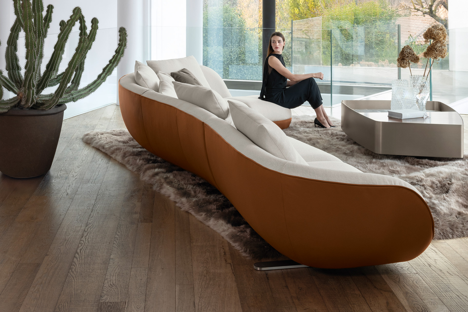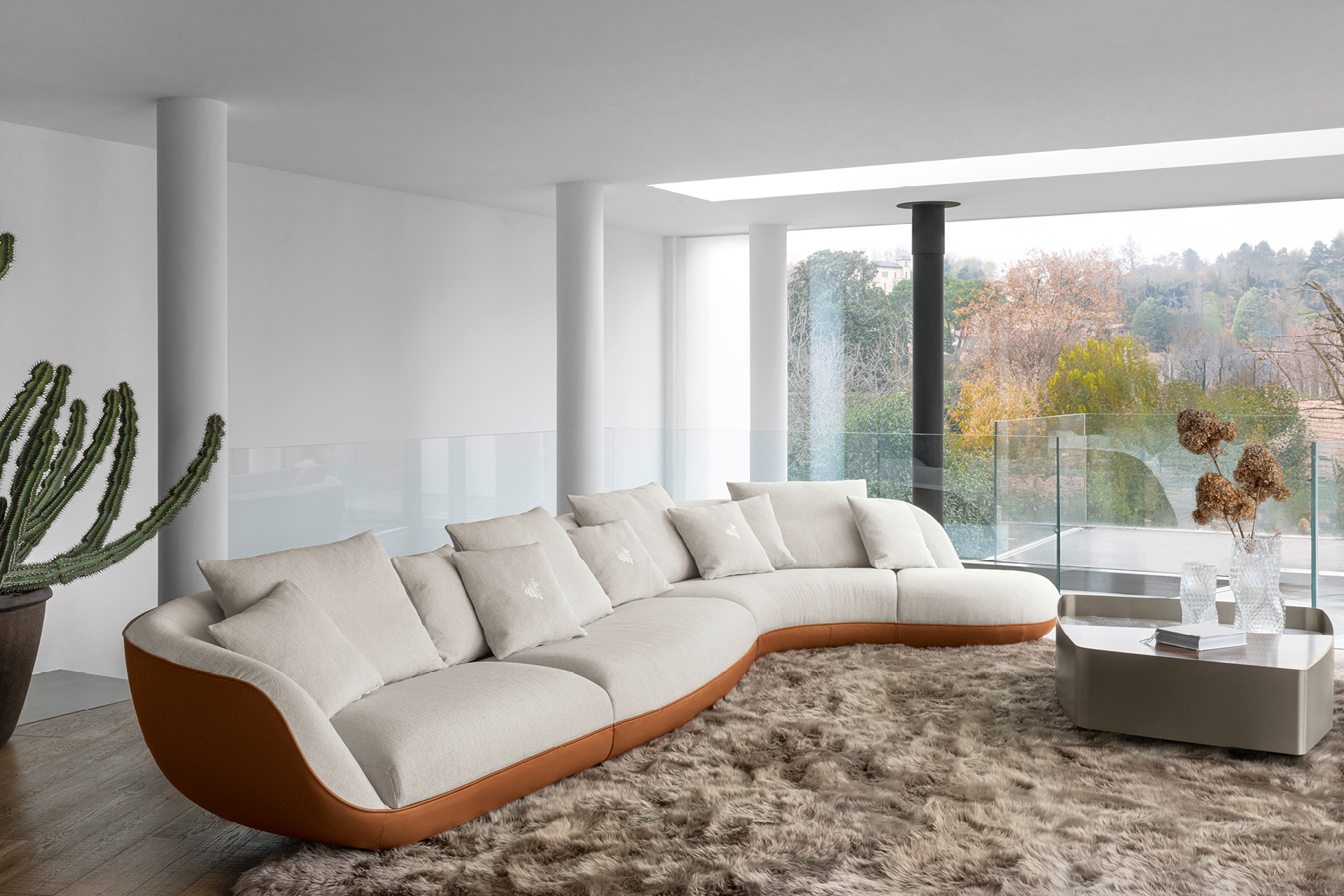 Chantal modular sofa available in first grade leather, nubuk leather, lizard printed leather or fabric. Sofa seats and sides with special stitching in polyurethane foam wrapped in down feather. Seat height cm. 43