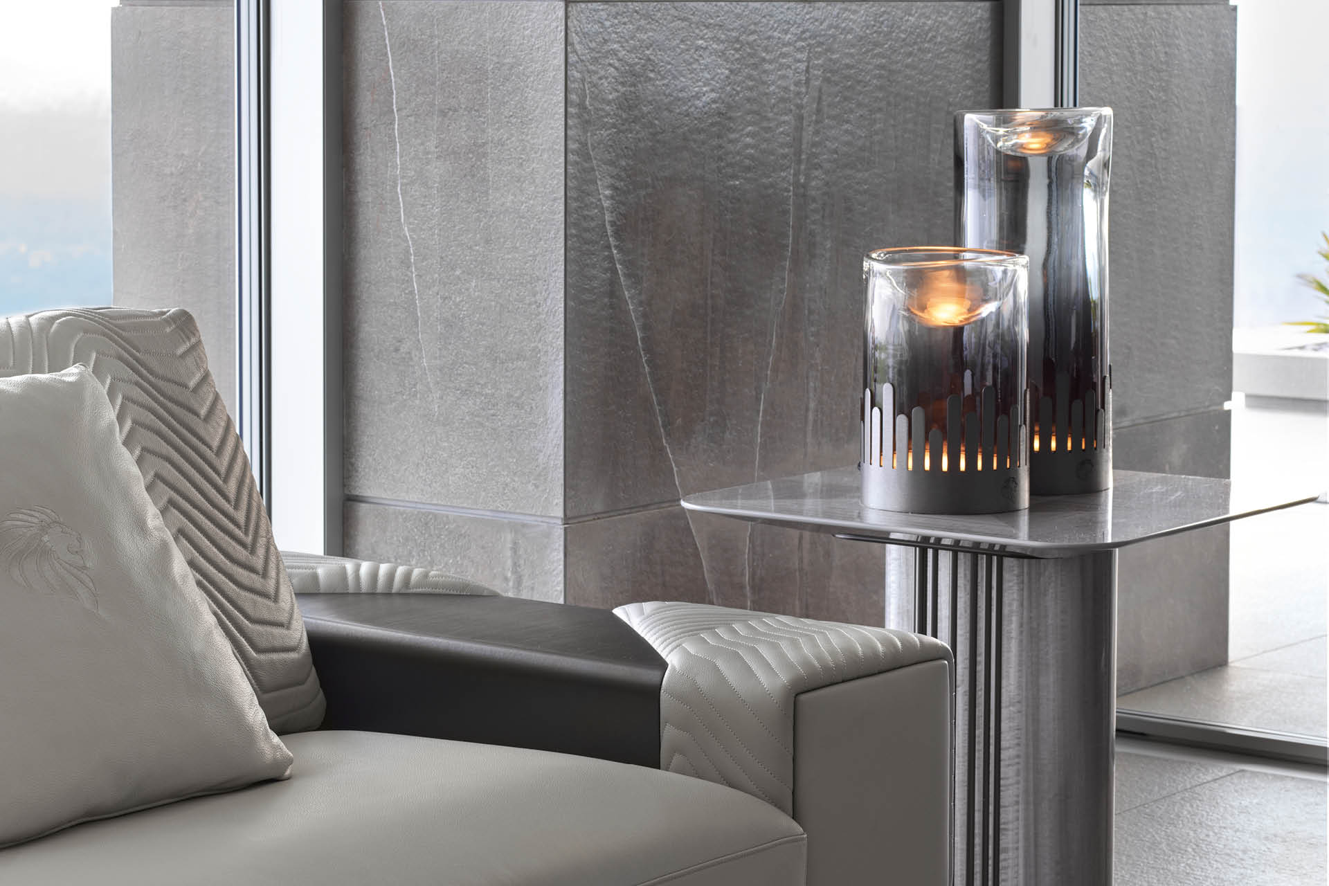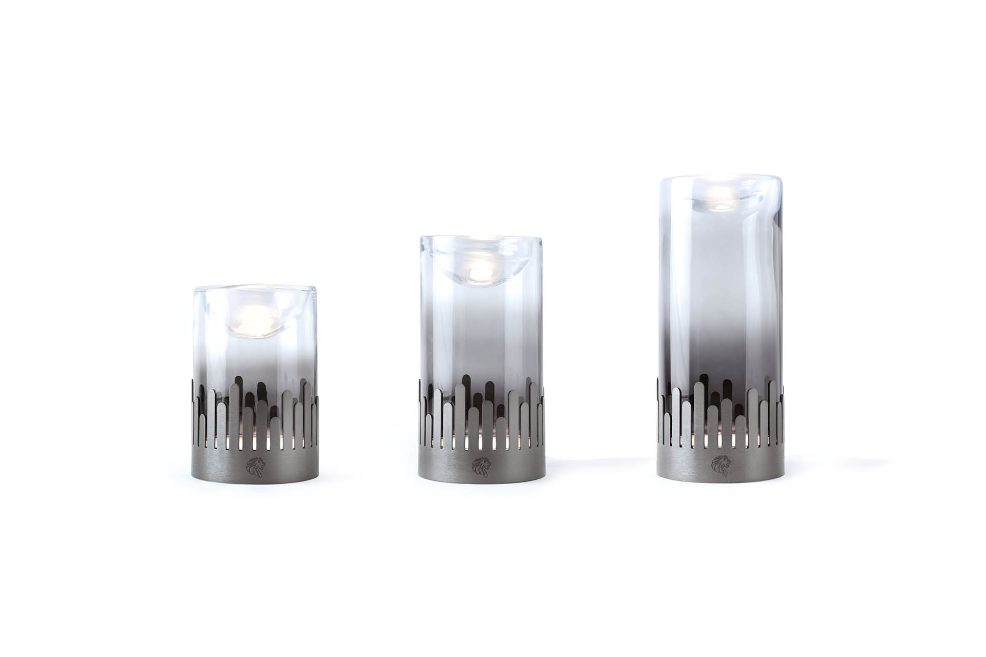 Lamp in combination of Venetian "Murano" graded smoked blown glass and satin grey nickel stainless steel base.