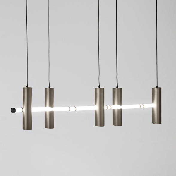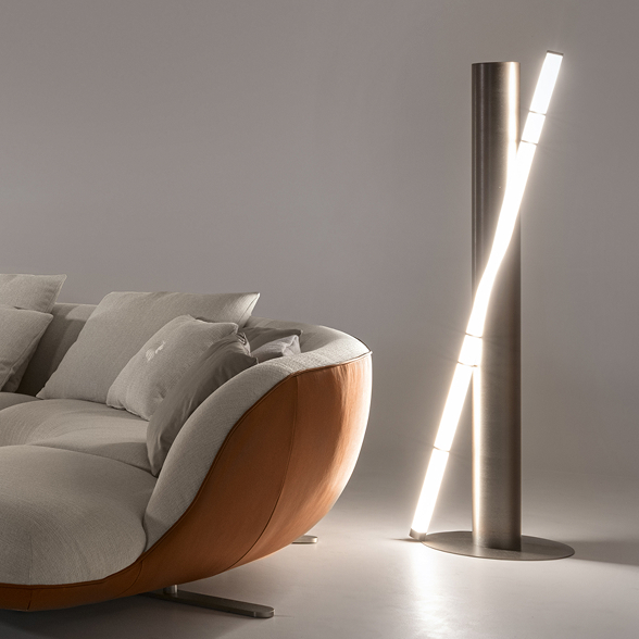 The Luxor range of chandeliers and lamps is a striking example of geometrical elegance. The distinctive design of these masterpieces features two slender intersecting cylindrical elements. Their clean lines and refined twist create a sense of motion, turning light into a visual statement.