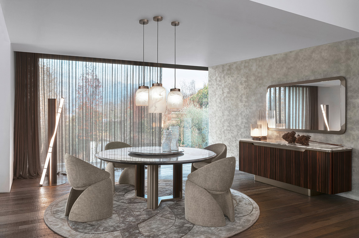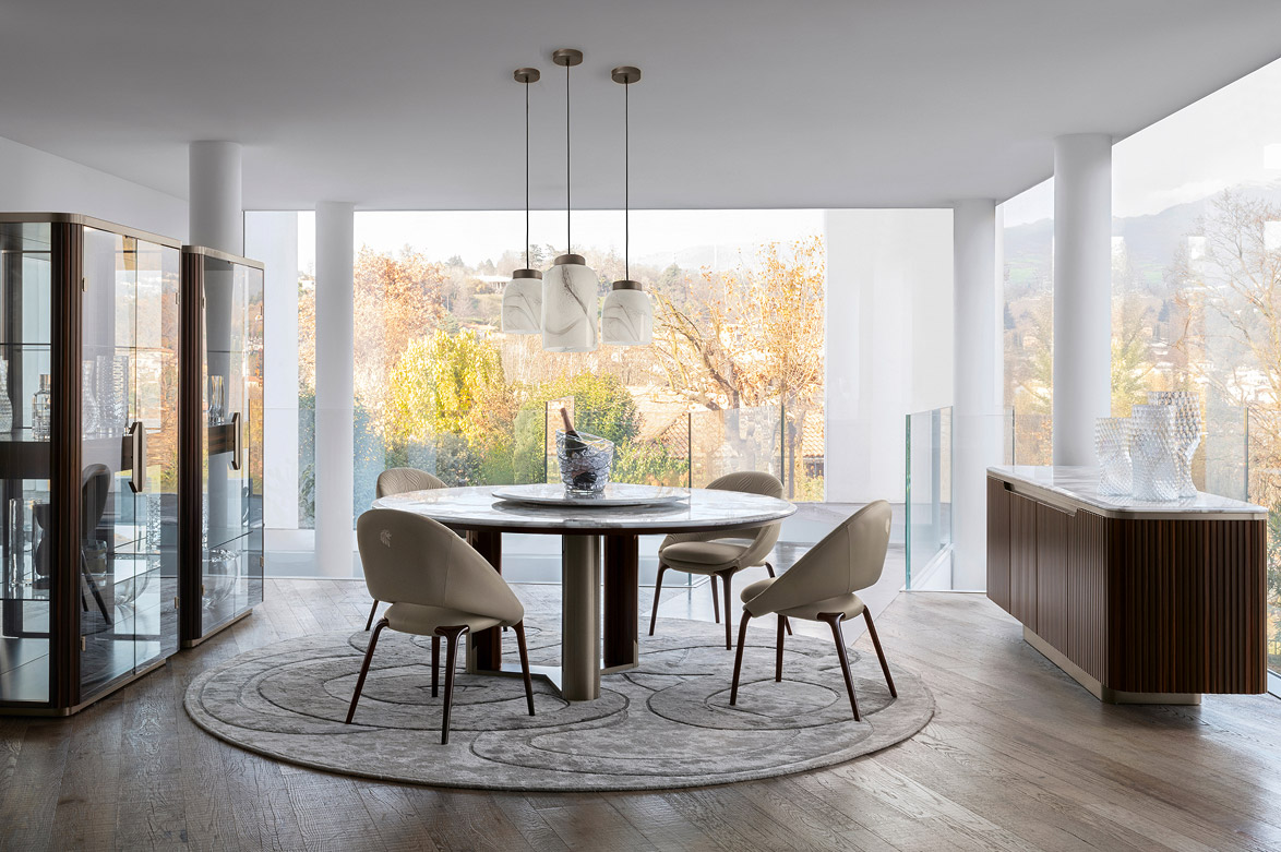 Furnishing an exclusive dining room in a luxury villa means finding the perfect balance between aesthetics, comfort and functionality. Sculptural tables, tailor-made chairs, refined lighting and classy accessories contribute to creating an iconic, elegant and welcoming space. The Giorgio Collection ranges represent excellence in this regard: fine materials, international design and artisan craftsmanship transform every dining room into a spectacular and unforgettable place, where style and conviviality coexist in perfect harmony.