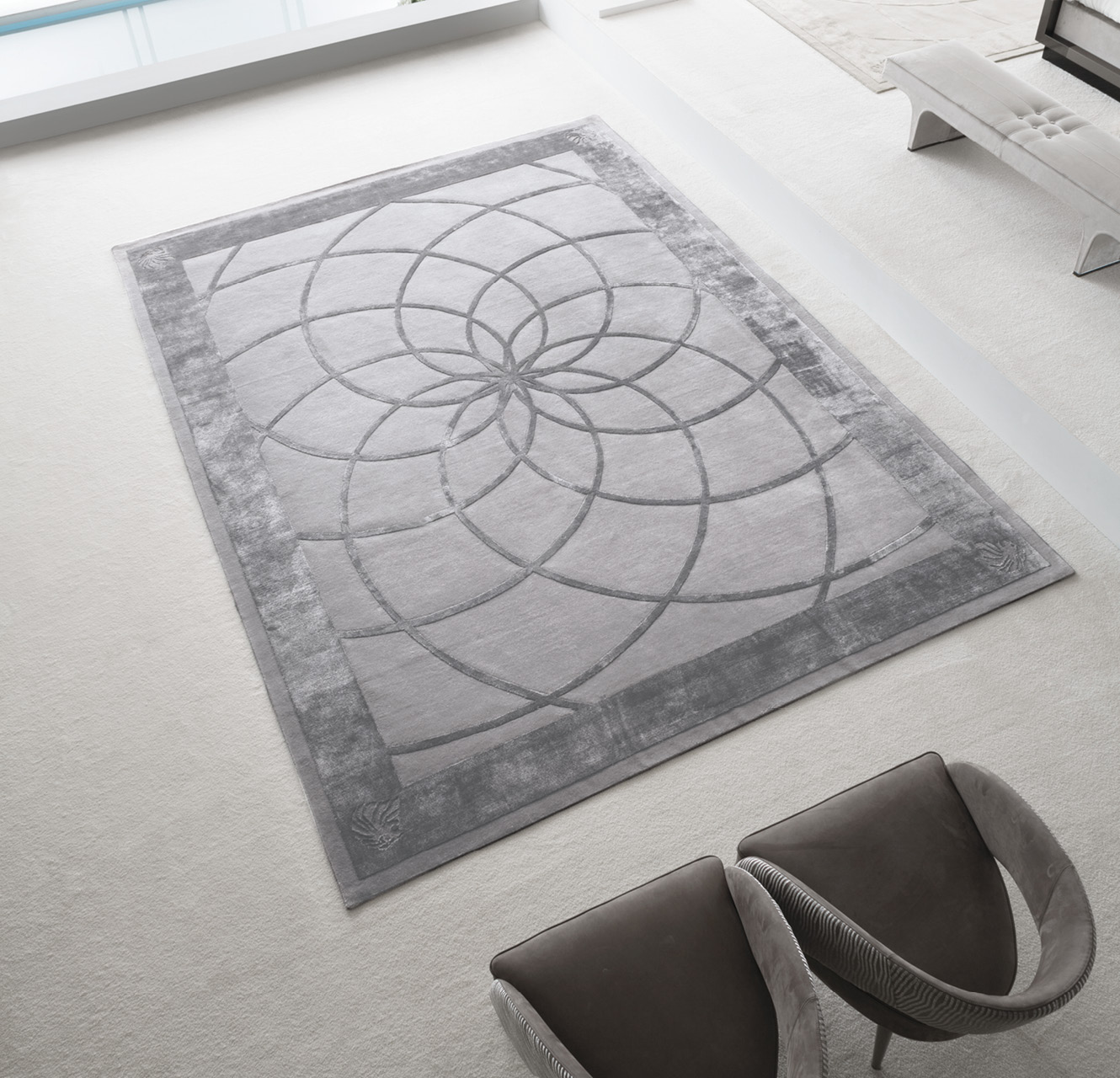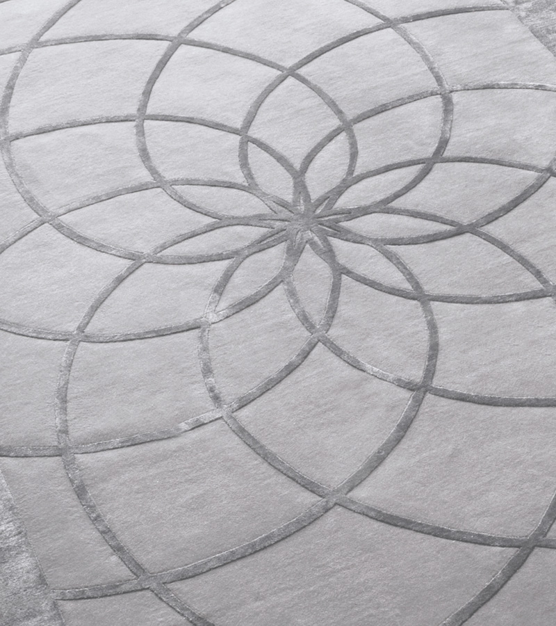 Серый ковер ручной вязки из комбинации шерсти и 100% шелка. Изготовлен на заказ.