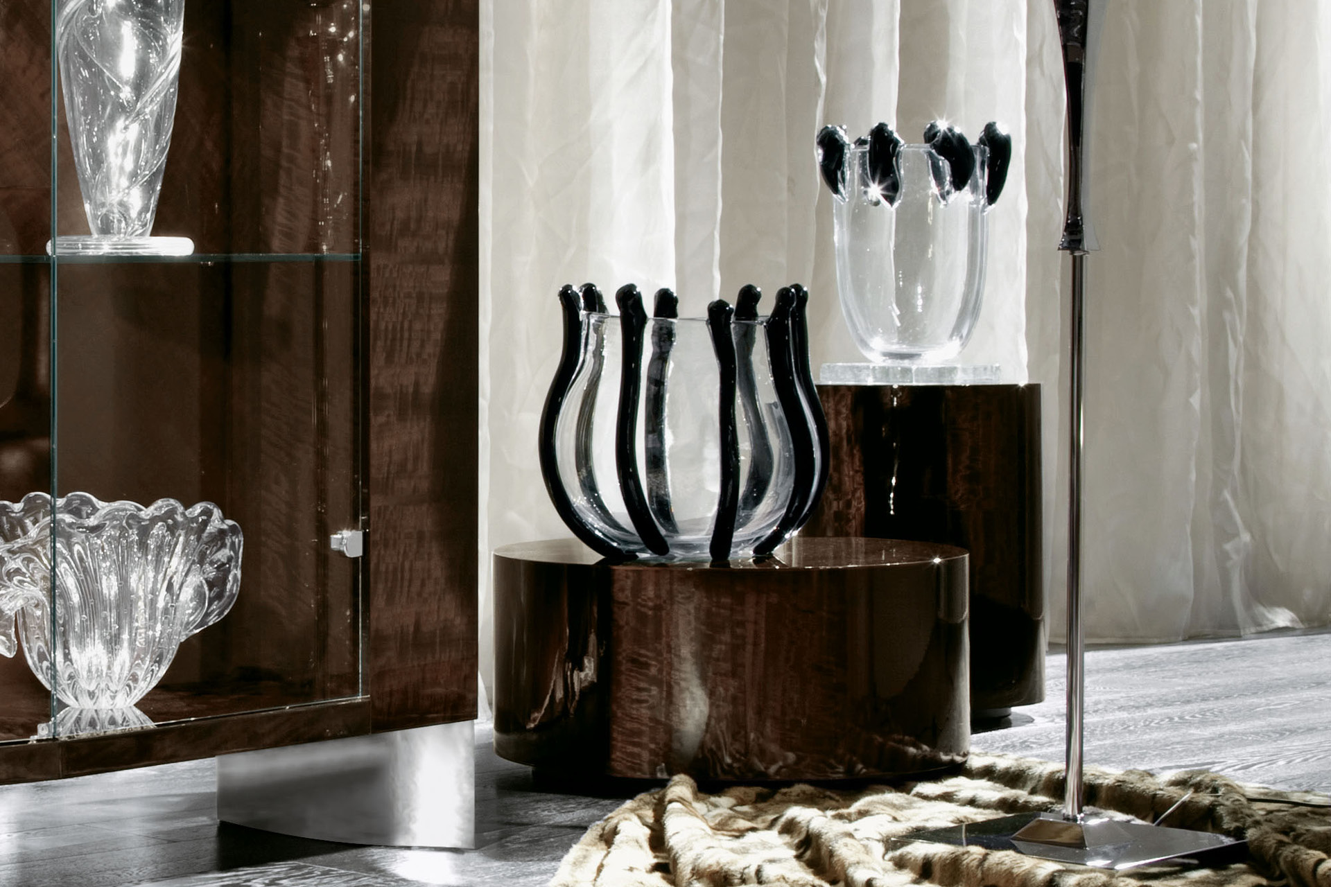 Ваза из венецианского «Мурано» из прозрачного стекла с черной вставкой.